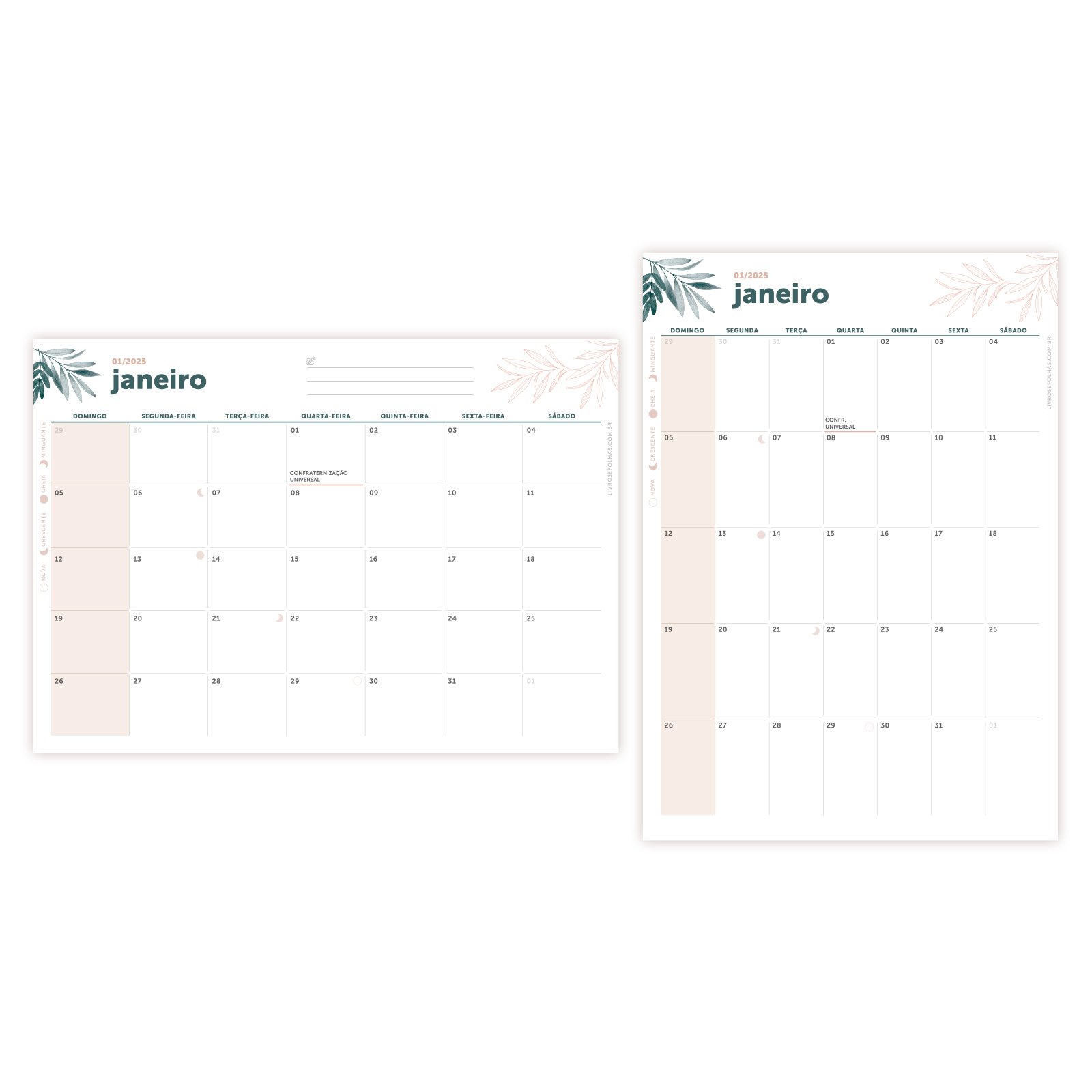 O pacote contém 2 versões em PDF, para que você escolha o formato que mais combina com seu estilo: