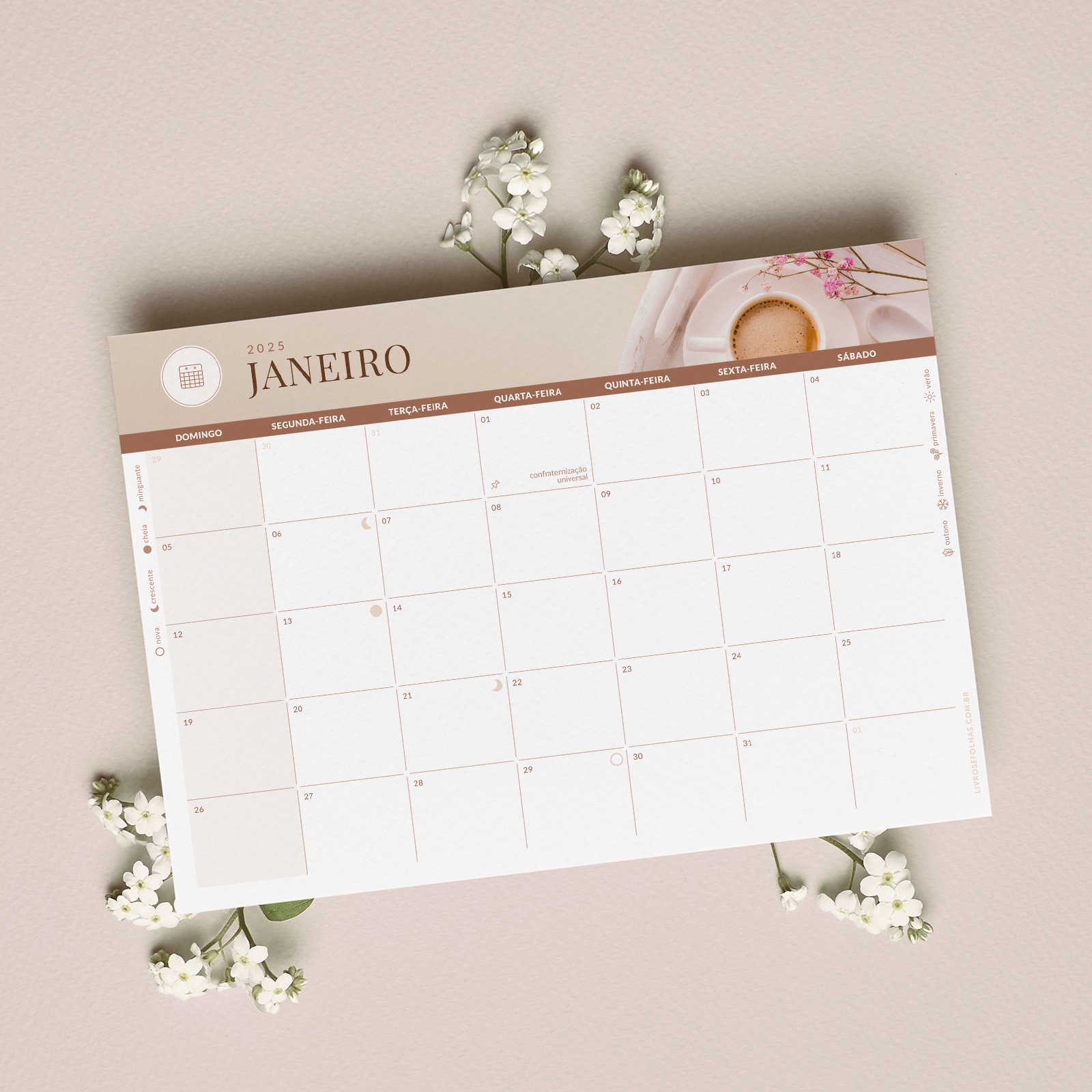 Feito exclusivamente para impressão, o Calendário 2025 é o companheiro ideal para transformar seus planos em conquistas, mantendo sua rotina organizada e cheia de inspiração ao longo do ano.